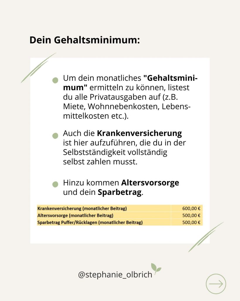 Dein monatliches Gehaltsminimum in der Selbstständigkeit